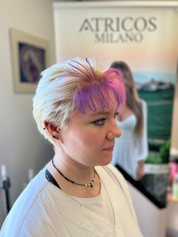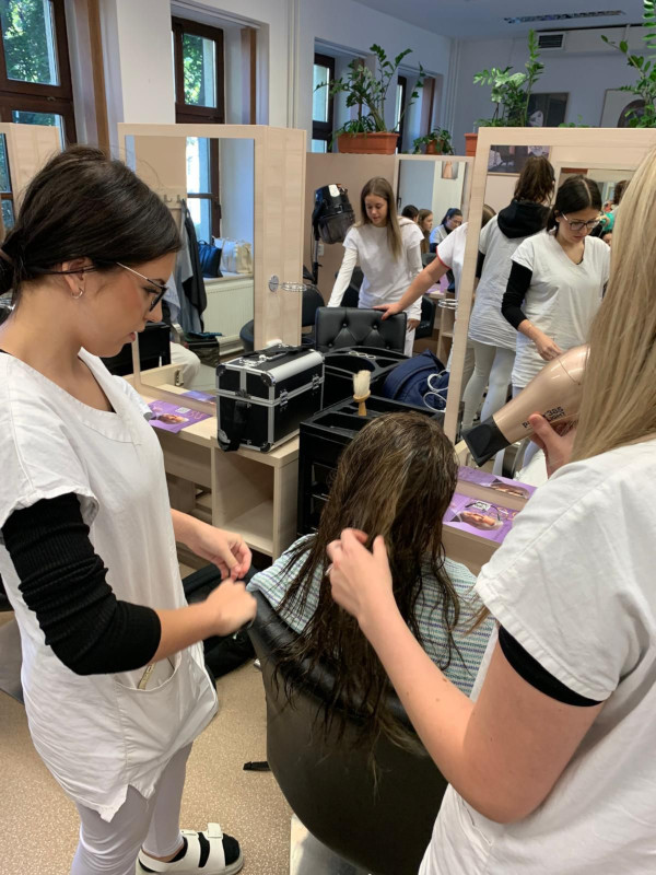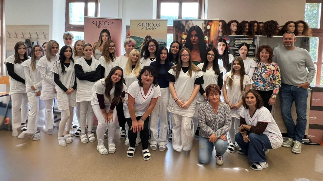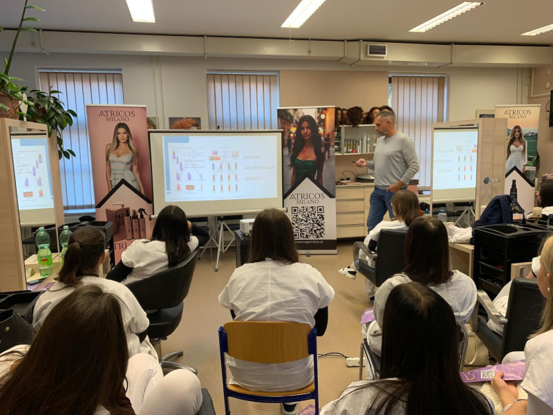 Součástí programu byla také prezentace značky ATRICOS MILANO, jejíž produkty byly během kurzu používány. Žáci se tak seznámili s profesionální vlasovou kosmetikou využívanou v moderních kadeřnických salonech po celé Evropě. Dále si dle vlastní kreativity vyzkoušeli míchání barevných masek a přímých pigmentů.