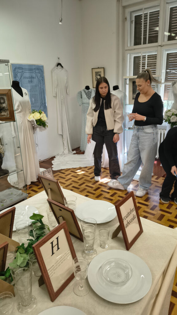 Naši žáci navštívili jedinečnou vzdělávací expozici „Svatba jako řemen – století svateb“, která mapuje proměny svatební módy, účesů, doplňků i společenské atmosféry napříč desetiletími.