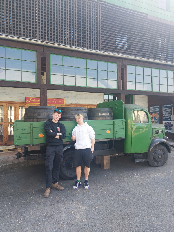 Druhou zastávkou bylo Návštěvnické centrum Rudolf Jelínek, kde žáci zhlédli video o historii a sortimentu firmy a zároveň ochutnali základní surovinu – švestky. Poté si prošli závod s podrobným výkladem paní průvodkyně. Nechyběla ani možnost nákupu ve firemní prodejně, a to včetně slivovice, samozřejmě pouze pro plnoleté osoby.