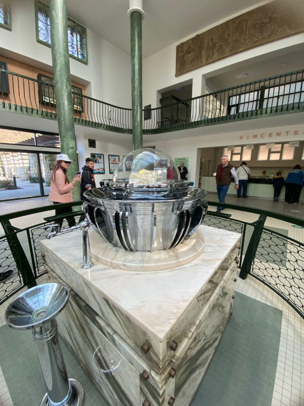 Při zpáteční cestě žáci navštívili lázeňské město Luhačovice, kde ochutnali Vincentku z minerálního pramene, prošli si kolonádu a zakoupili si lázeňské oplatky.