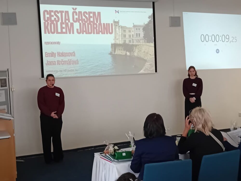 Minulý týden se družstvo našich žáků ze třídy 3. A oboru Cestovní ruch ve složení Emily Halaxová a Jana Krčmářová zúčastnilo již 16. ročníku mezinárodní soutěže Mladý průvodce 2026 v Ostravě. Cílem soutěže bylo sestavení pětidenního zájezdu po Evropě na téma: Mozaika historie a současnosti a jeho prezentace.